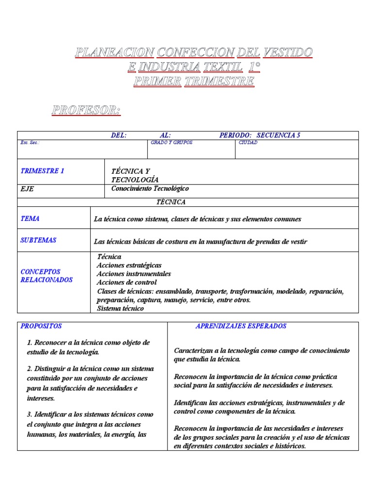 SUBTEMAS Las técnicas básicas de costura en la manufactura de prendas de vestir