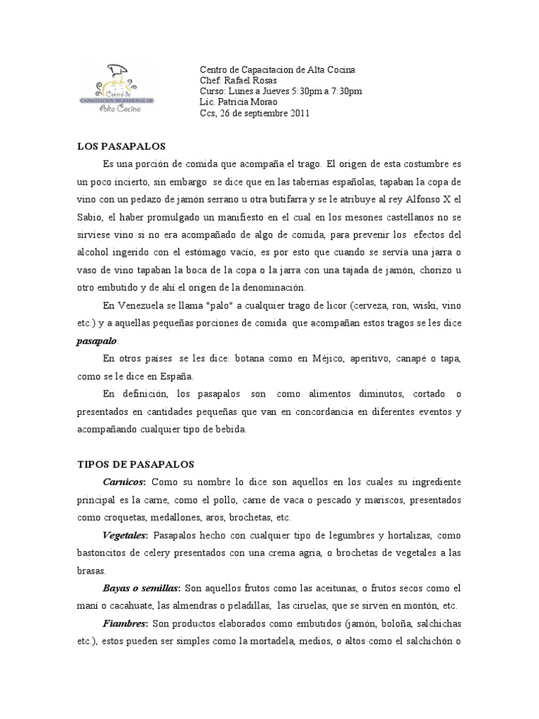 cuchillos etc.). Si el pasapalo lo amerita debemos ofrecer utensilios que faciliten su