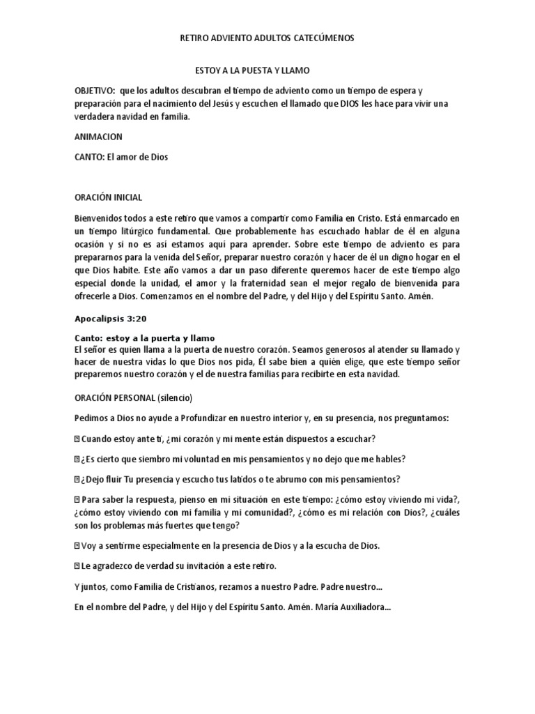 RETIRO ADVIENTO ADULTOS CATECÚMENOS