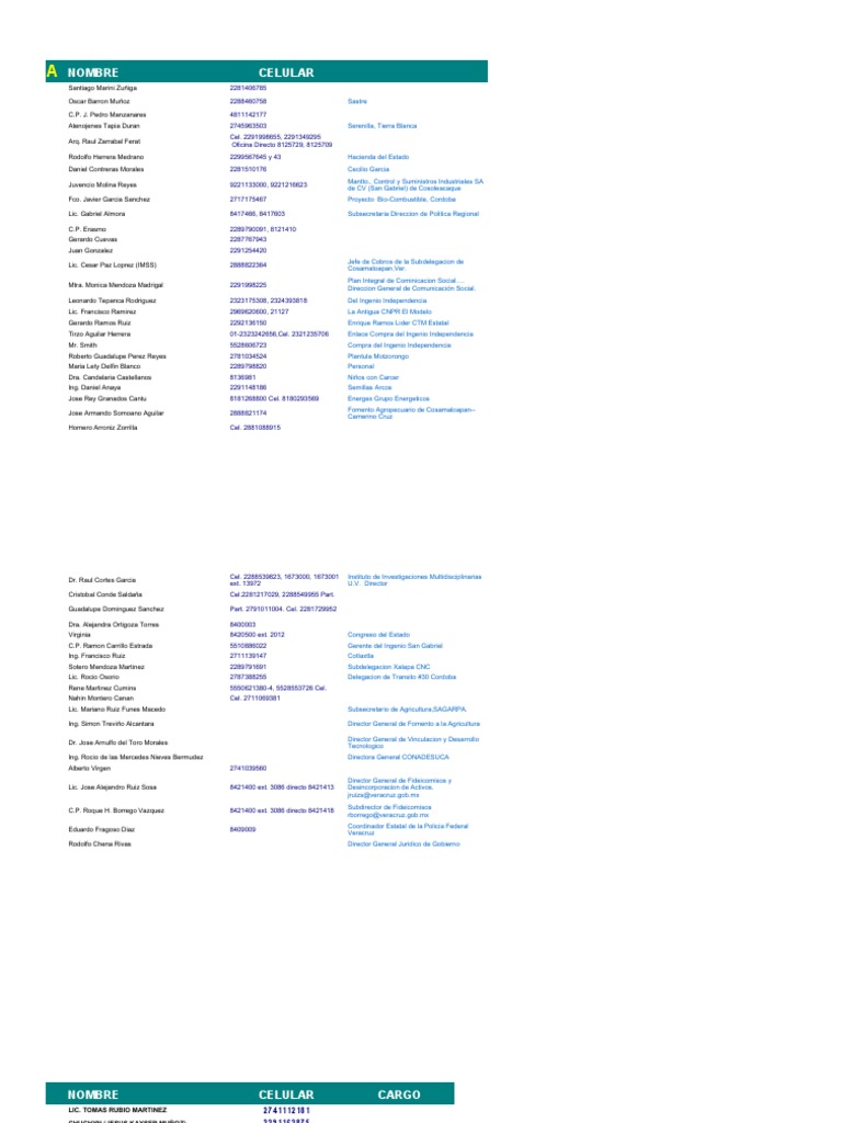 B NOMBRE OFICINA FAX CELULAR PARTICULAR CARGO