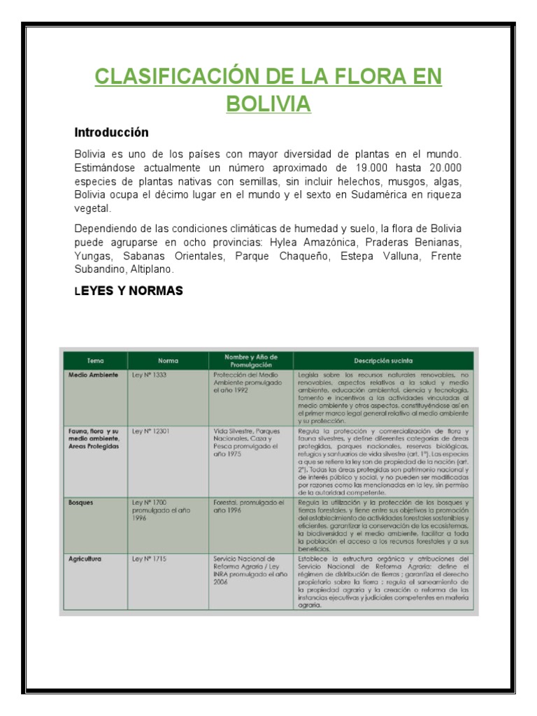 Dependiendo de las condiciones climáticas de humedad y suelo, la flora de Bolivia