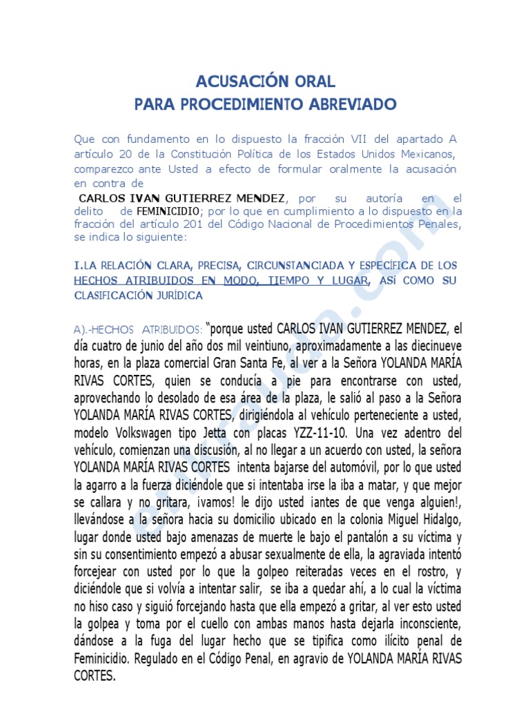 comparezco ante Usted a efecto de formular oralmente la acusación