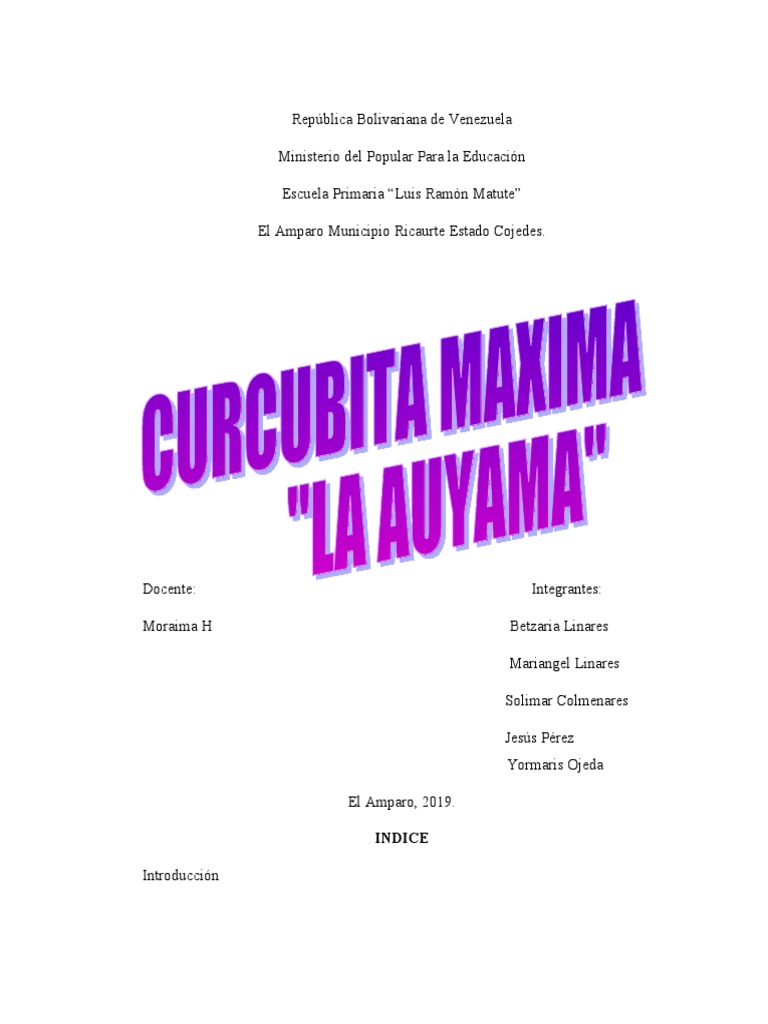 Zulay Alvaran 2014. Monografía sobre la auyama. República Bolivariana de