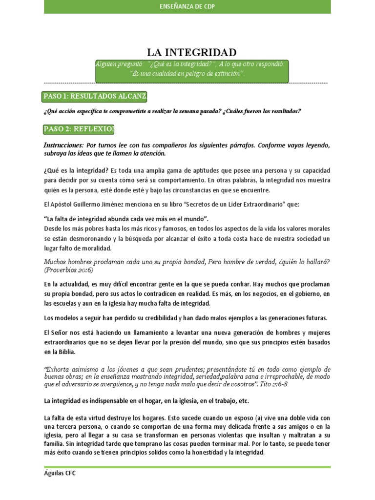 La integridad es indispensable en el hogar, en la iglesia, en el trabajo, etc.