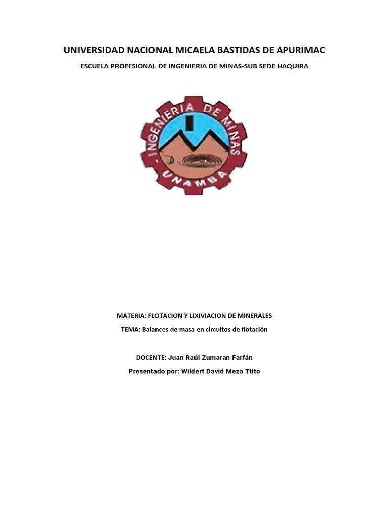 MATERIA: FLOTACION Y LIXIVIACION DE MINERALES