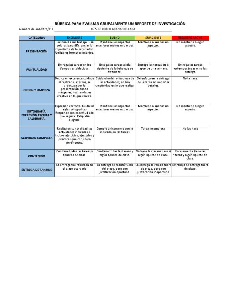 Rúbrica de Evaluación de Reportes Académicos