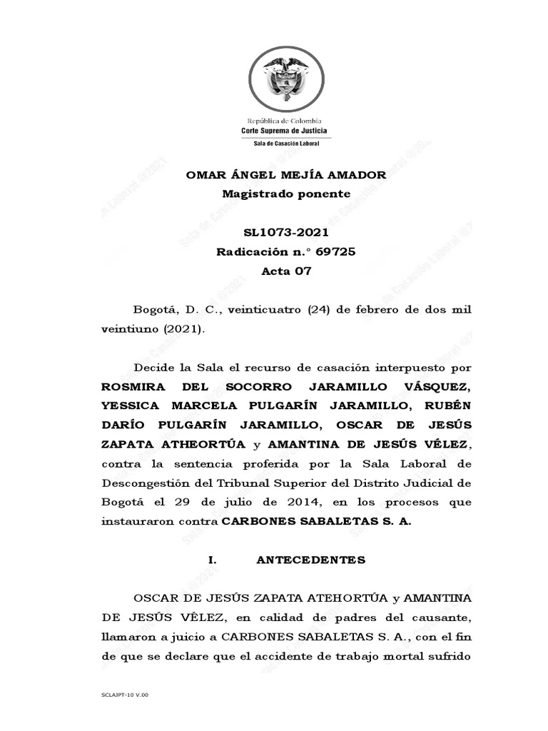 trabajaba para CARBONES DE SABALETAS S. A., se debió