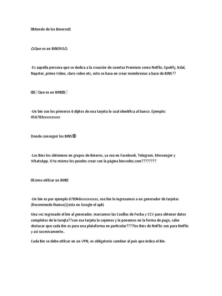 -Los Bins los obteienes en grupos de Bineros, ya sea en Facebook, Telegram, Messenger y