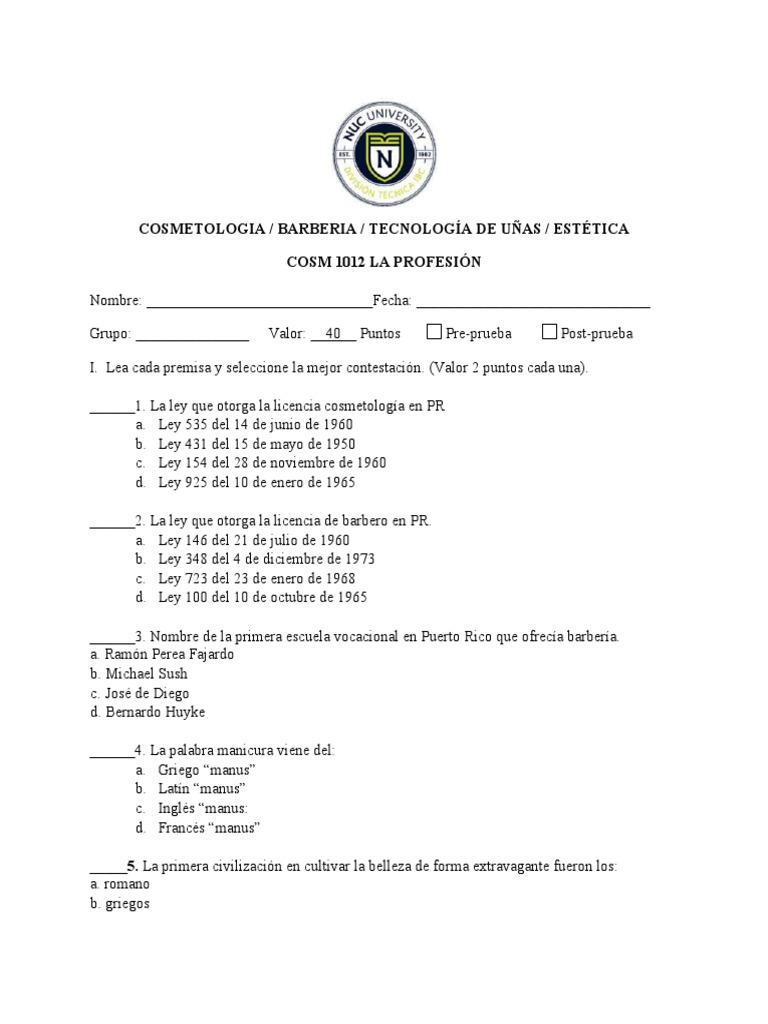 ______1. La ley que otorga la licencia cosmetología en PR