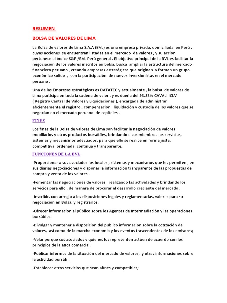 La Bolsa de valores de Lima S.A.A (BVL) es una empresa privada, domiciliada en Perú ,
