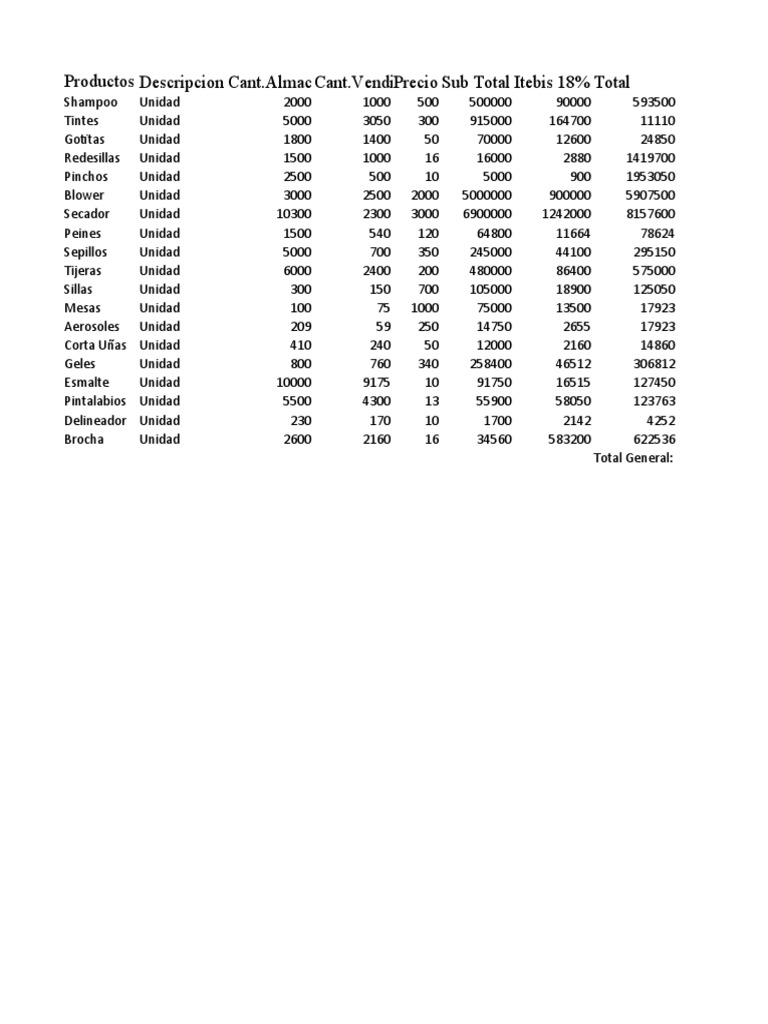 VendiPrecio Sub Total Itebis 18% Total