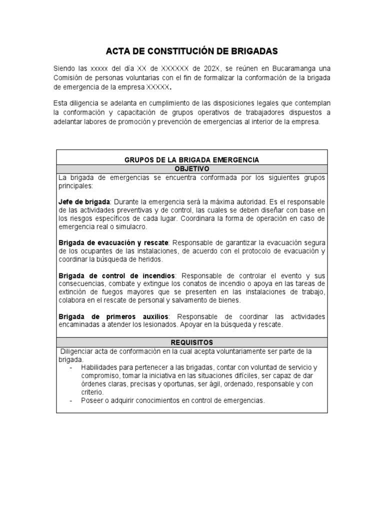 ACTA DE CONSTITUCIÓN DE BRIGADAS