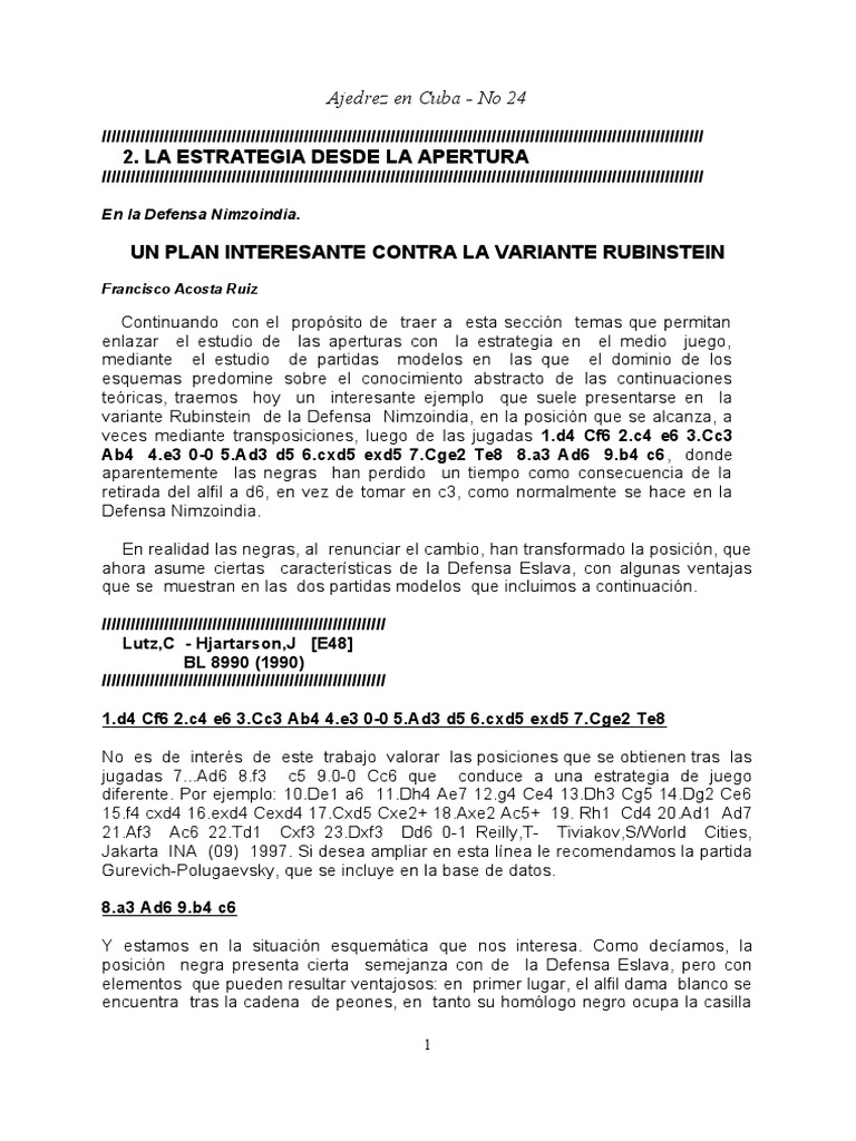 Rubinstein, especialmente contra este esquema de juego (recomendamos ver las