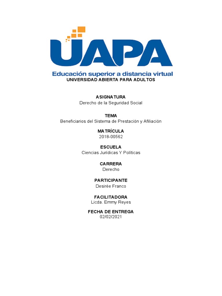 Beneficiarios del Sistema de Seguridad Derechos y Deberes de los Beneficiarios del Sistema