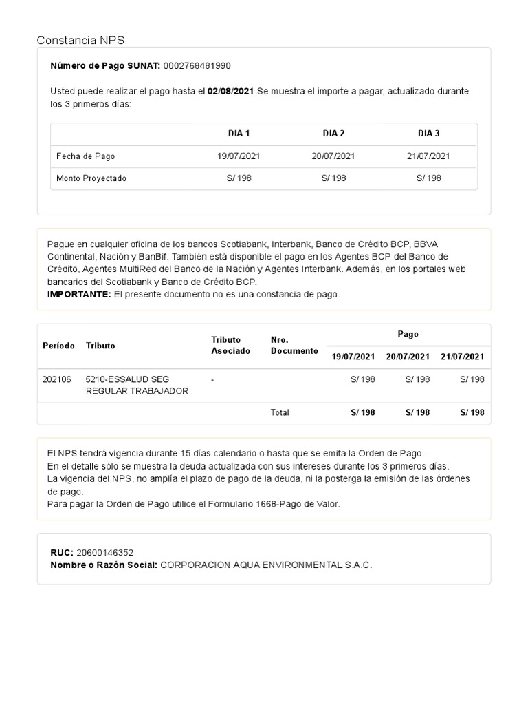 202106 5210-ESSALUD SEG - S/ 198 S/ 198 S/ 198