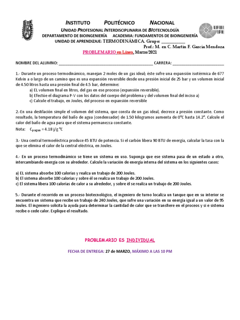 UNIDAD DE APRENDIZAJE: TERMODINÁMICA. Grupo: ___________