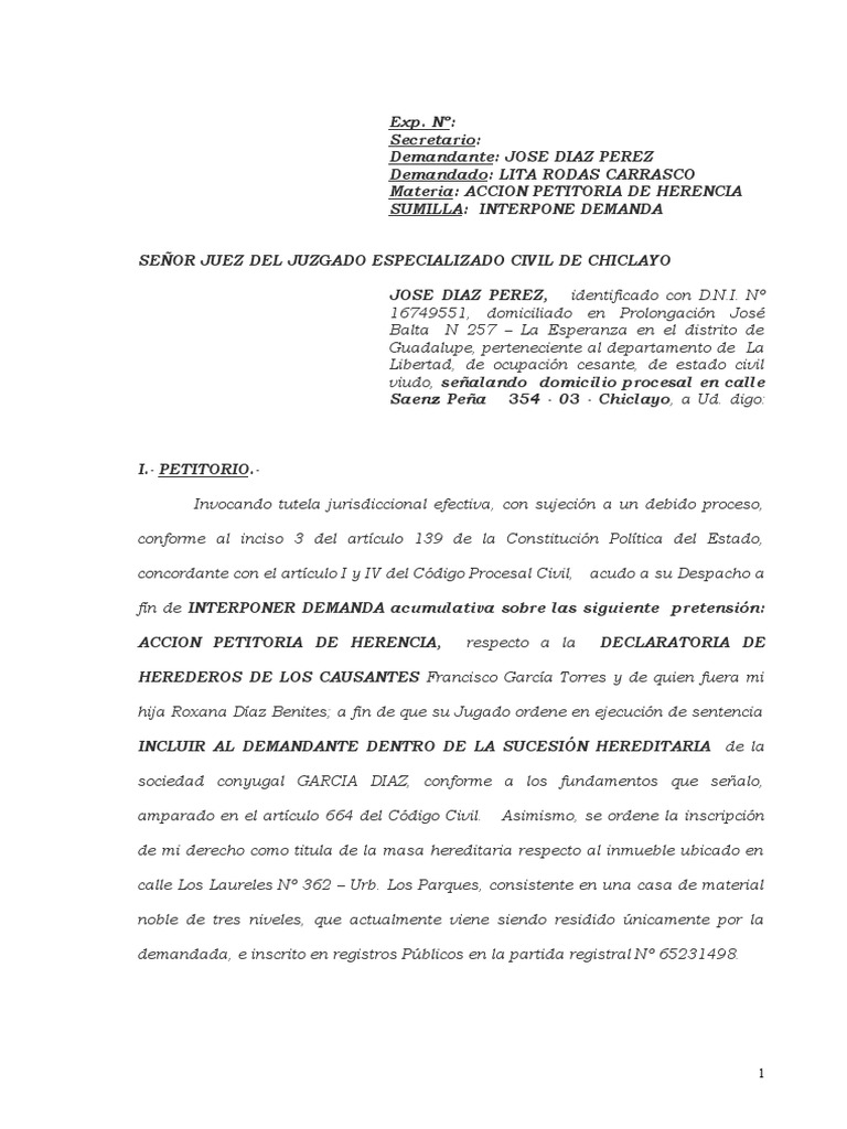 INCLUIR AL DEMANDANTE DENTRO DE LA SUCESIÓN HEREDITARIA de la