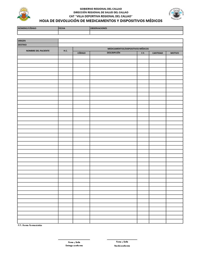 HOJA DE DEVOLUCIÓN DE MEDICAMENTOS Y DISPOSITIVOS MÉDICOS