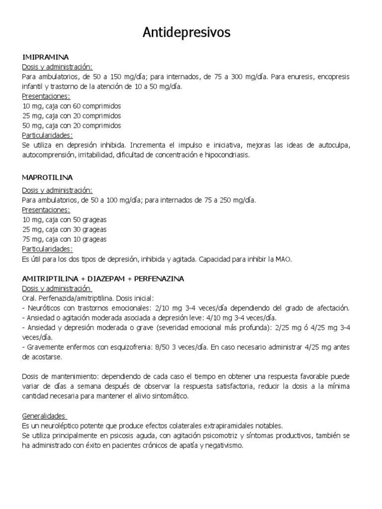 Para ambulatorios de 50 a 150 mg/día; para internados de 100 a 300 mg/día. Para enuresis y encopresis se