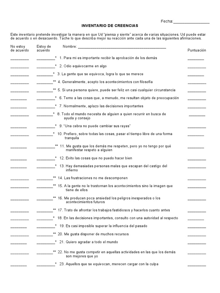 Este inventario pretende investigar la manera en que Ud “piensa y siente” acerca de varias situaciones. Ud puede estar