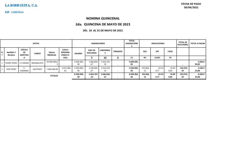NOMINA QUINCENAL