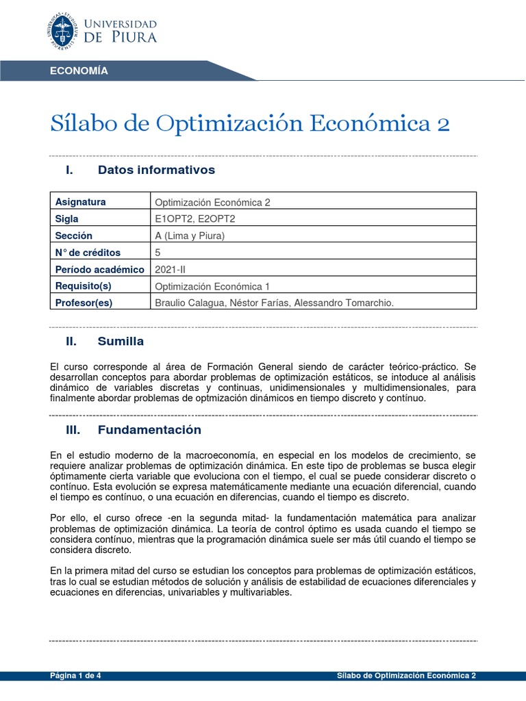 Página 1 de 4 Sílabo de Optimización Económica 2