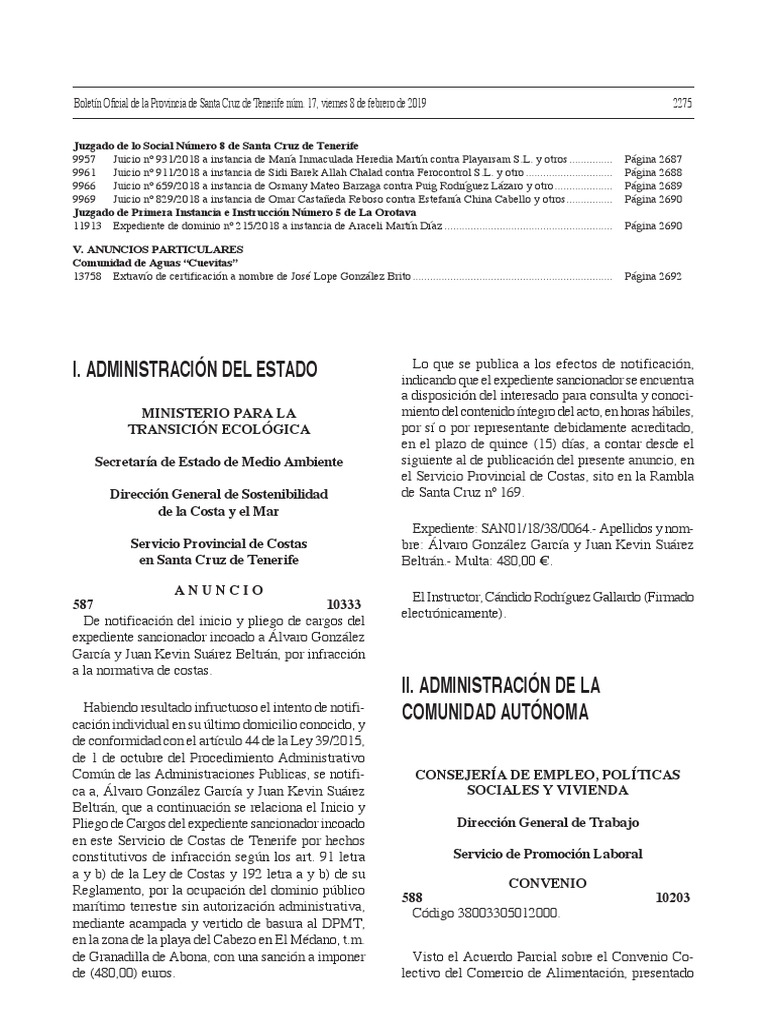 2276 Boletín Oficial de la Provincia de Santa Cruz de Tenerife núm. 17, viernes 8 de febrero de 2019