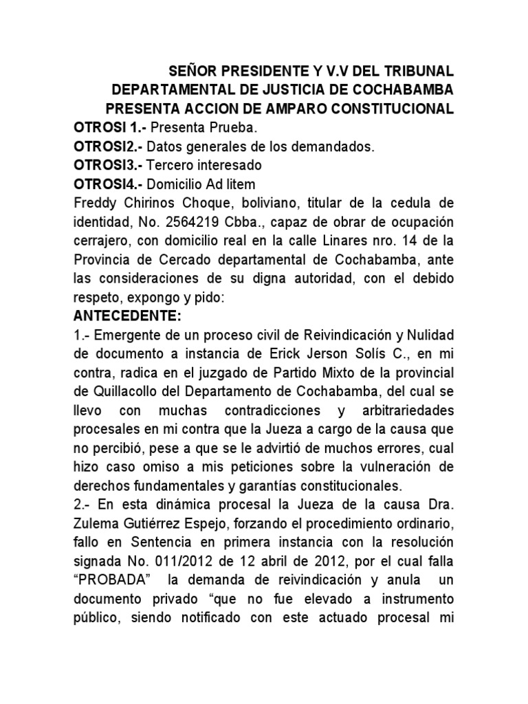 diligencias del juzgado de Quillacollo, sintiéndome agraviado
