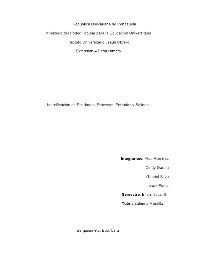 Identificación de Entidades, Procesos, Entradas y Salidas.