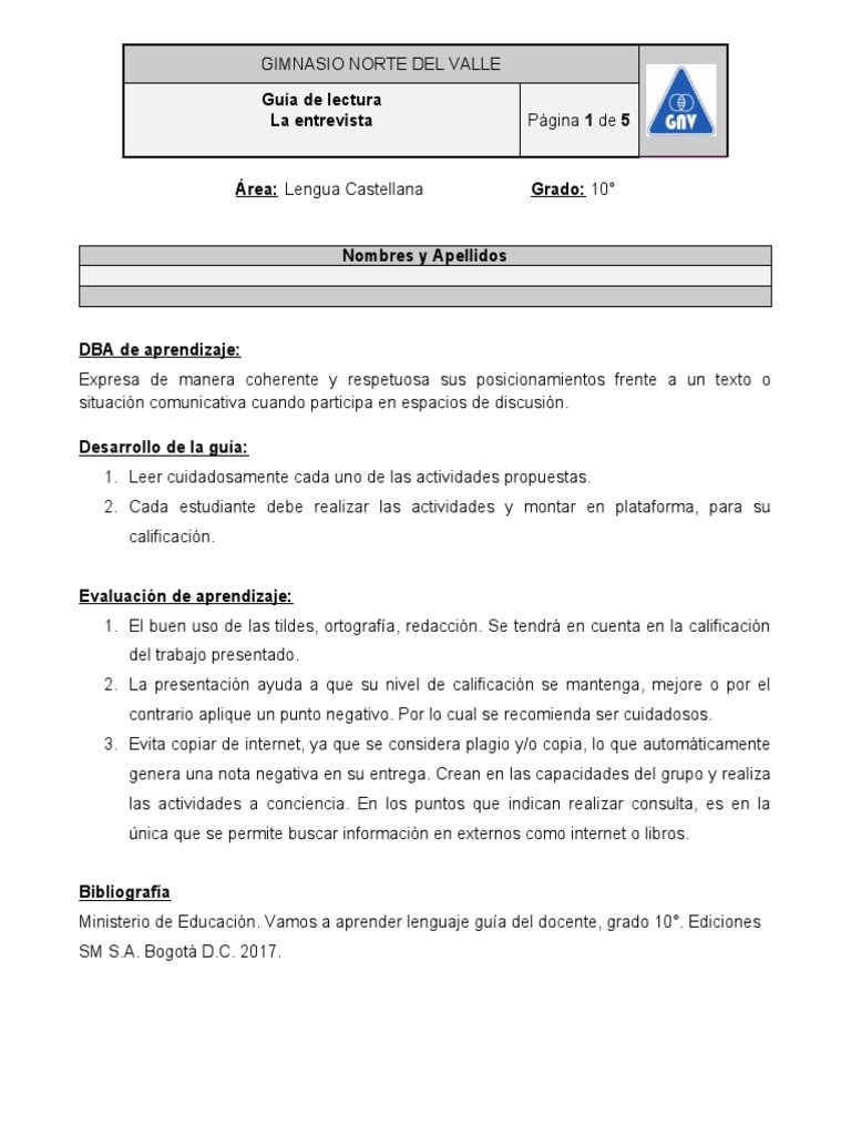 Ministerio de Educación. Vamos a aprender lenguaje guía del docente, grado 10°. Ediciones