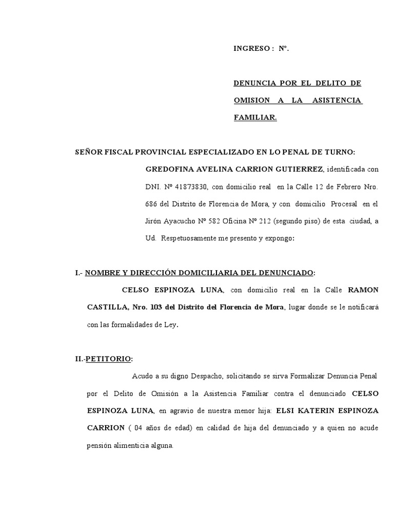 interpuesta la presente Denuncia Penal por el Delito de Omisión a la Asistencia Familiar