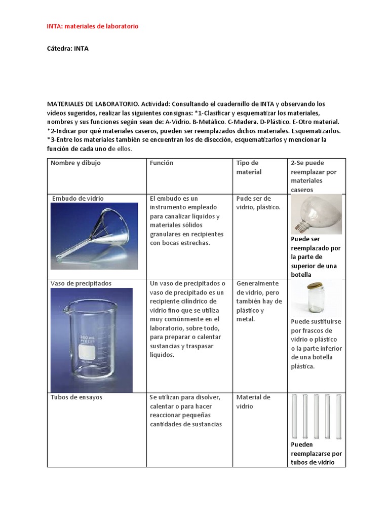INTA: materiales de laboratorio