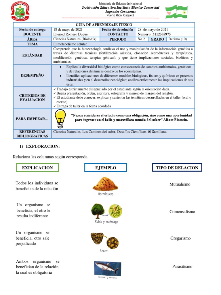 ÁREA Ciencias Naturales (Biología) PERIODO No 2 GRADO Decimo (10)