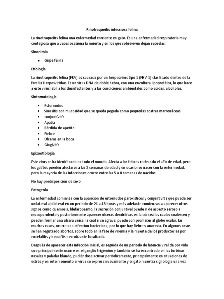 La rinotraqueítis felina (FRV) es causada por un herpesvirus tipo 1 (FHV-1) clasificado dentro de la