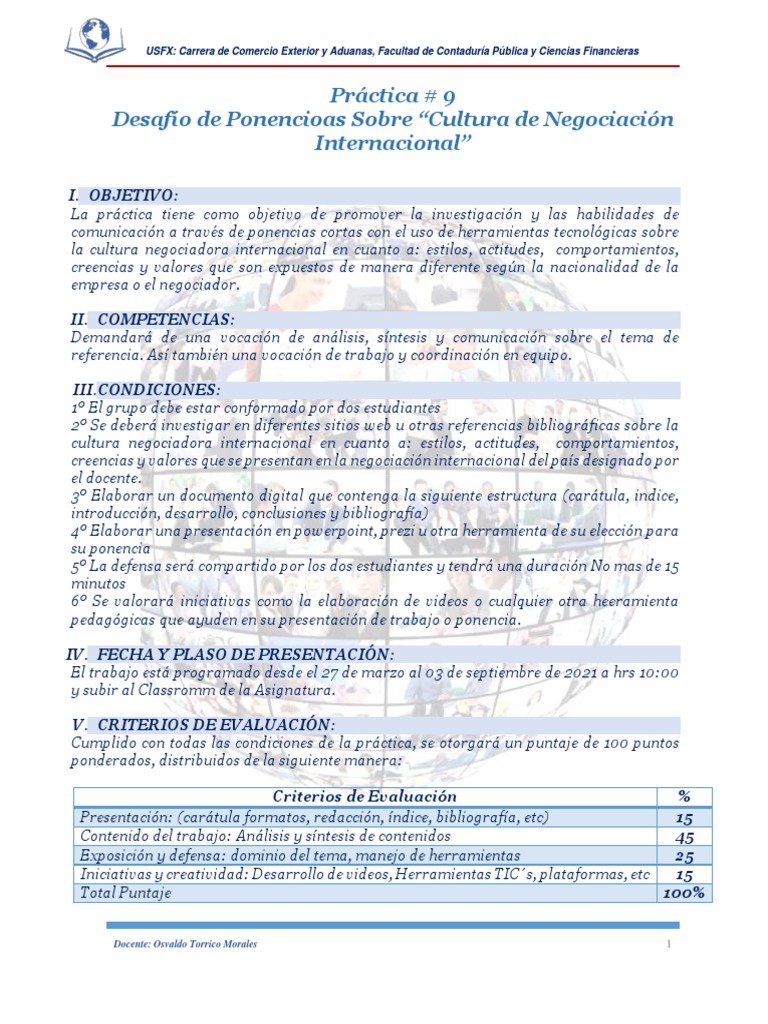 creencias y valores que se presentan en la negociación internacional del país designado por