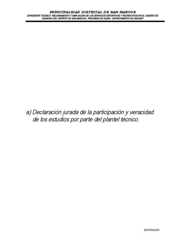a) Declaración jurada de la participación y veracidad