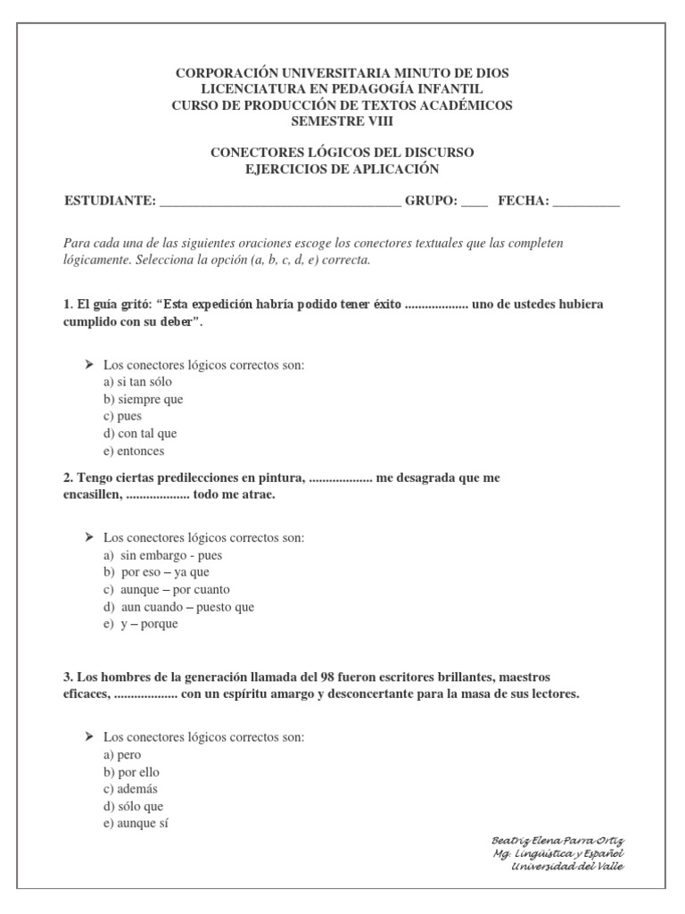 Para cada una de las siguientes oraciones escoge los conectores textuales que las completen