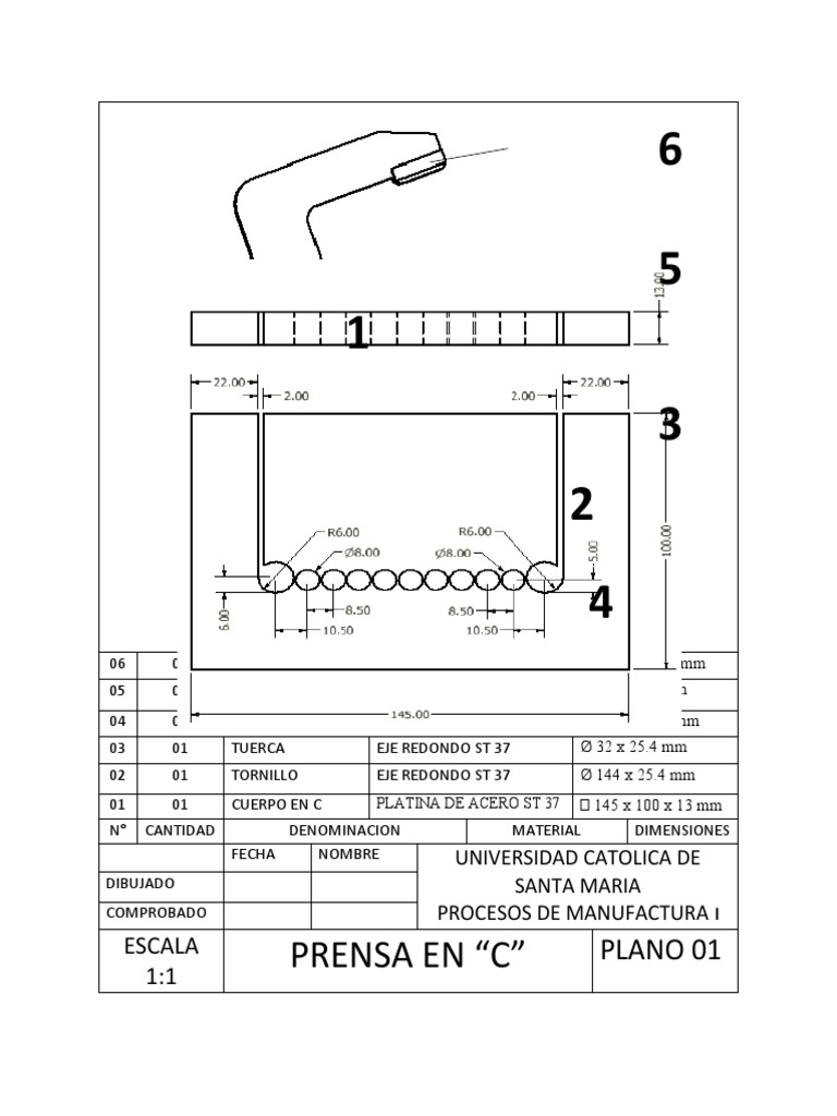 01 Cuerpo en “C” 01 145 x 100 x 13 mm Platina de acero st 37