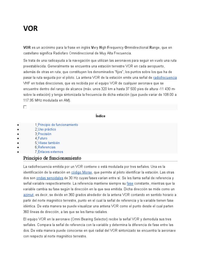 VOR es un acrónimo para la frase en inglés Very High Frequency Omnidirectional Range, que en
