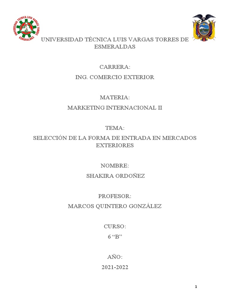 SELECCIÓN DE LA FORMA DE ENTRADA EN MERCADOS