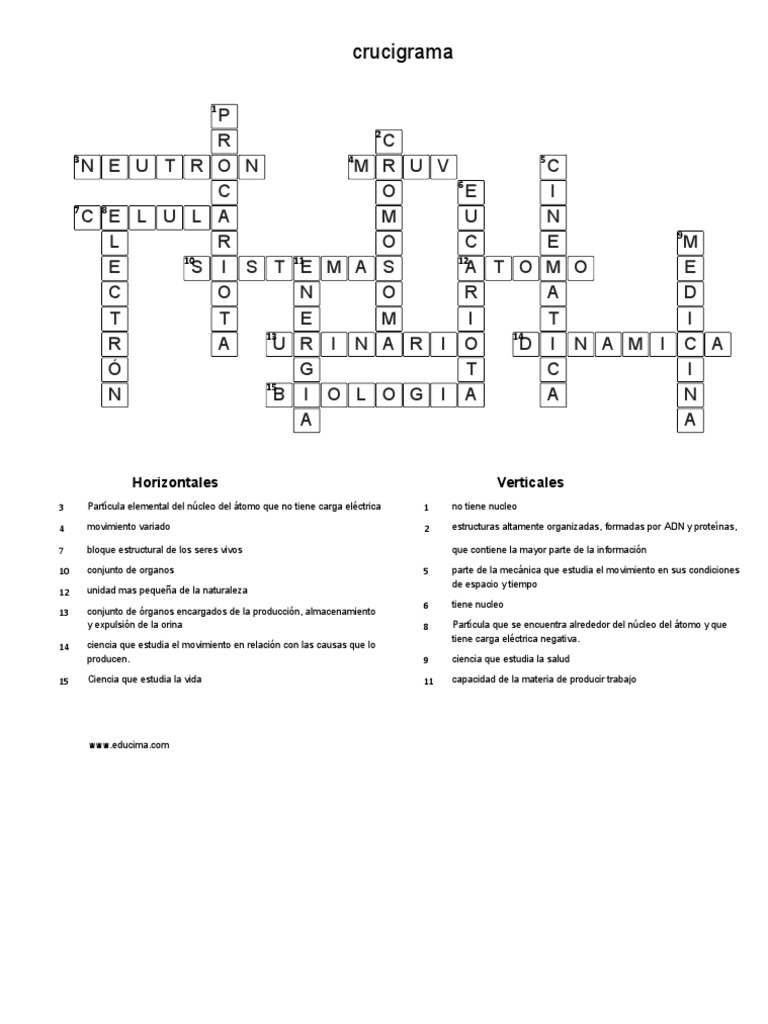 15 Ciencia que estudia la vida 11 capacidad de la materia de producir trabajo