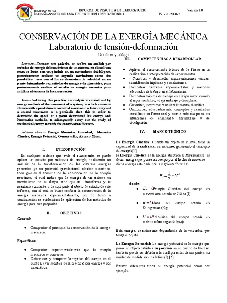Palabras clave— Energía Mecánica, Gravedad, Mecanica IV. MARCO TEÓRICO