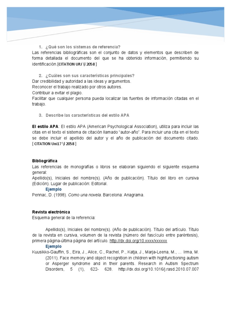 El estilo APA: El estilo APA (American Psychological Association), utiliza para incluir las