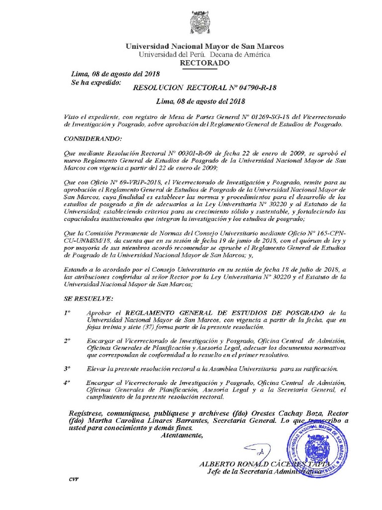 Sehaexpedide: reson UCION RECTORAL N° O4790-R-18