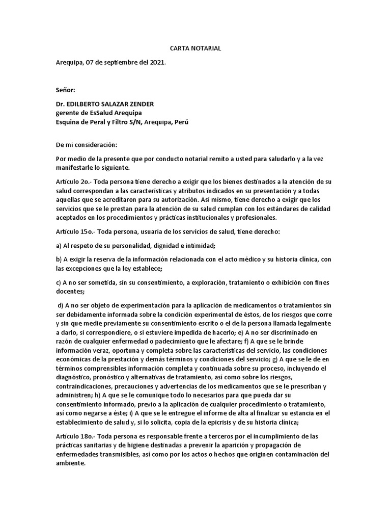 Por medio de la presente que por conducto notarial remito a usted para saludarlo y a la vez