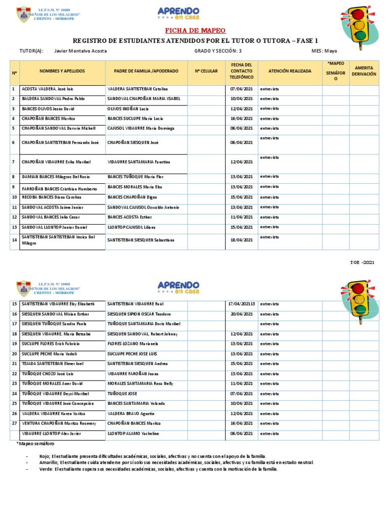 REGISTRO DE ESTUDIANTES ATENDIDOS POR EL TUTOR O TUTORA – FASE 1