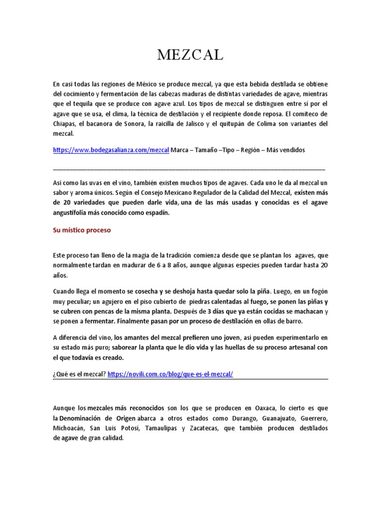sabor y aroma únicos. Según el Consejo Mexicano Regulador de la Calidad del Mezcal, existen más