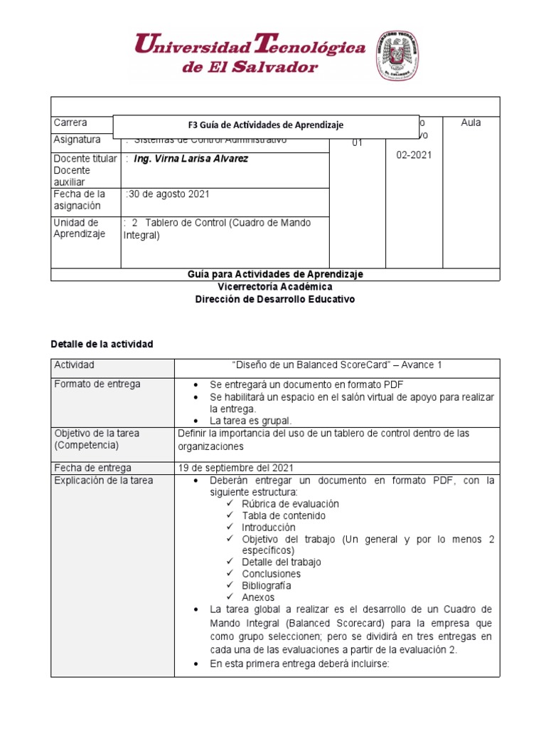 Asignatura: Sistemas de control administrativo- Modalidad Virtual (SICA-V)