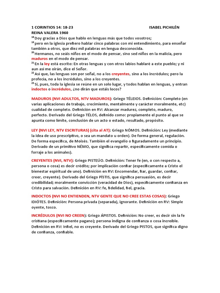 1 CORINTIOS 14: 18-23 ISABEL PICHILÉN
