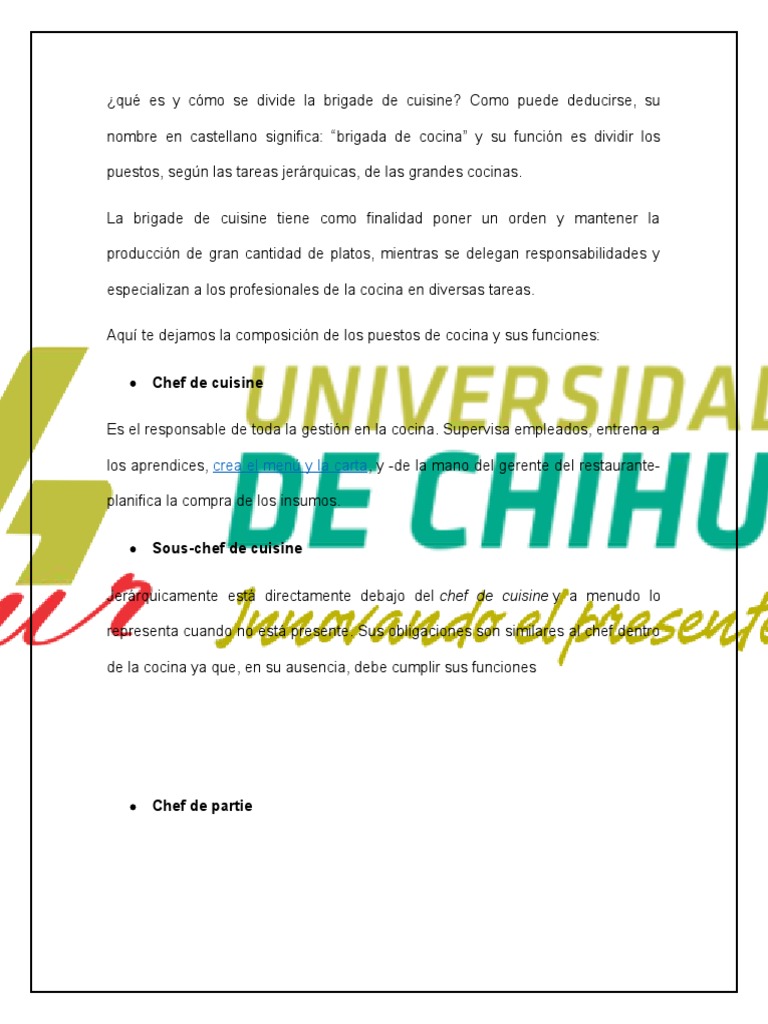 La brigade de cuisine tiene como finalidad poner un orden y mantener la